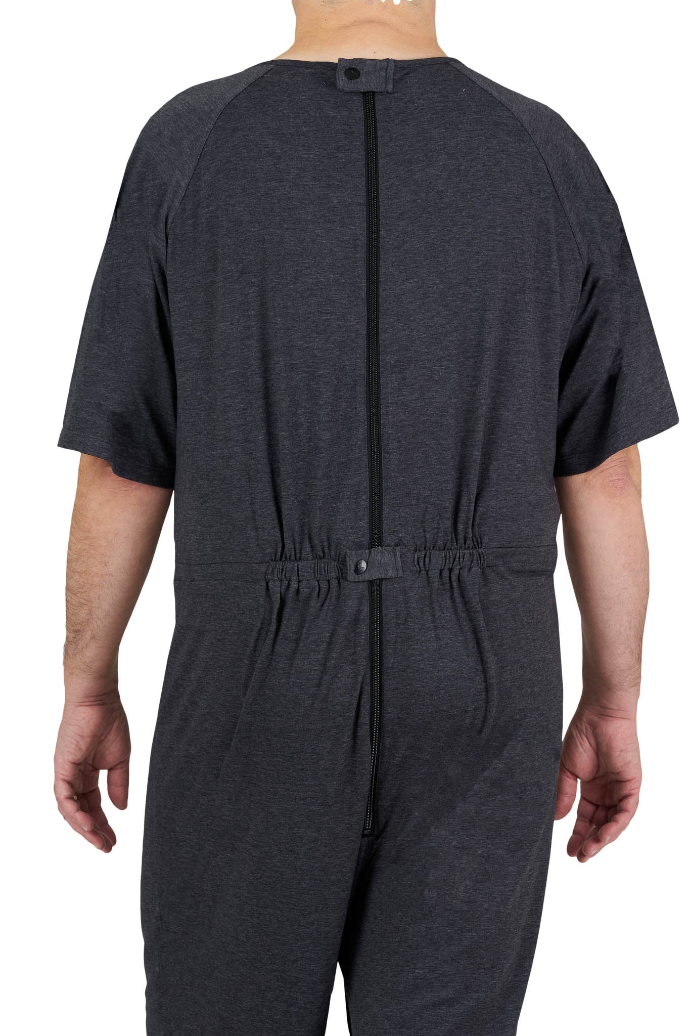 - Les longues fermetures éclairs au dos et à l’entrejambe facilitent le changement des sous-vêtements d’incontinence et permettent un habillage sans douleur.