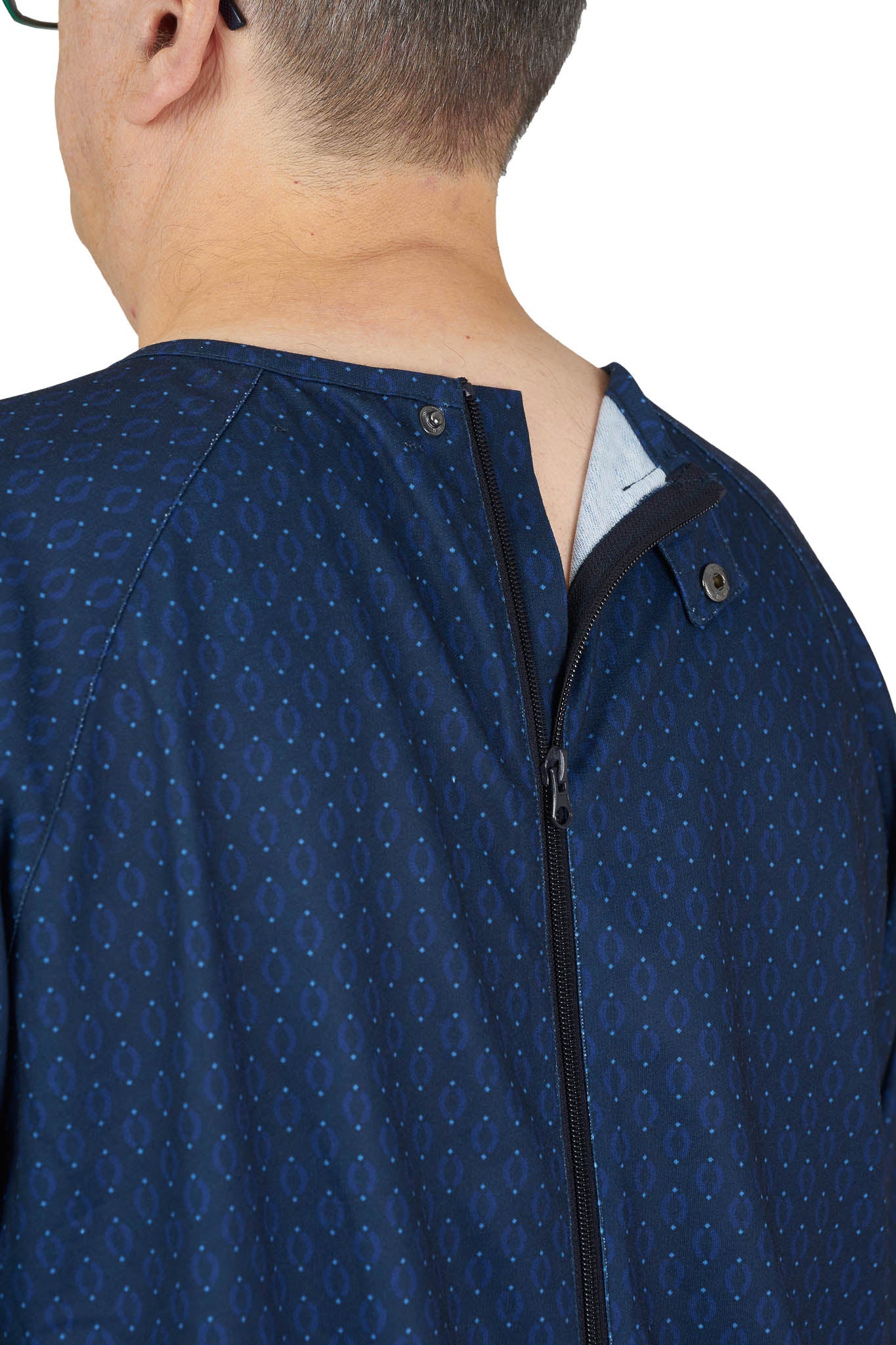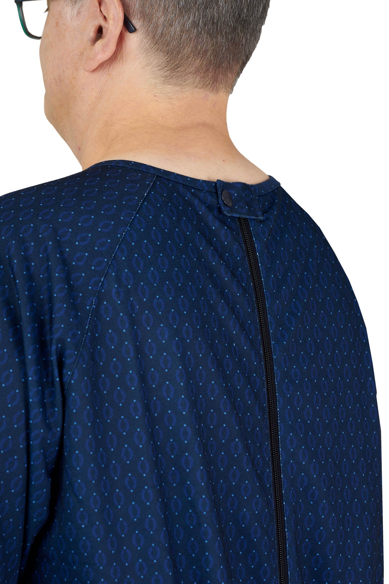 - Les longues fermetures éclairs au dos et à l’entrejambe facilitent le changement des sous-vêtements d’incontinence et permettent un habillage sans douleur.