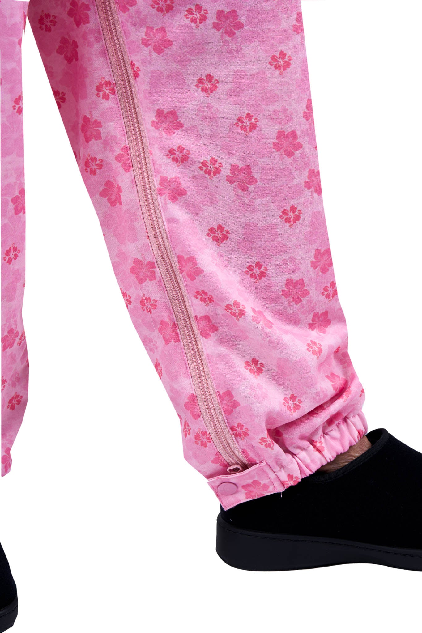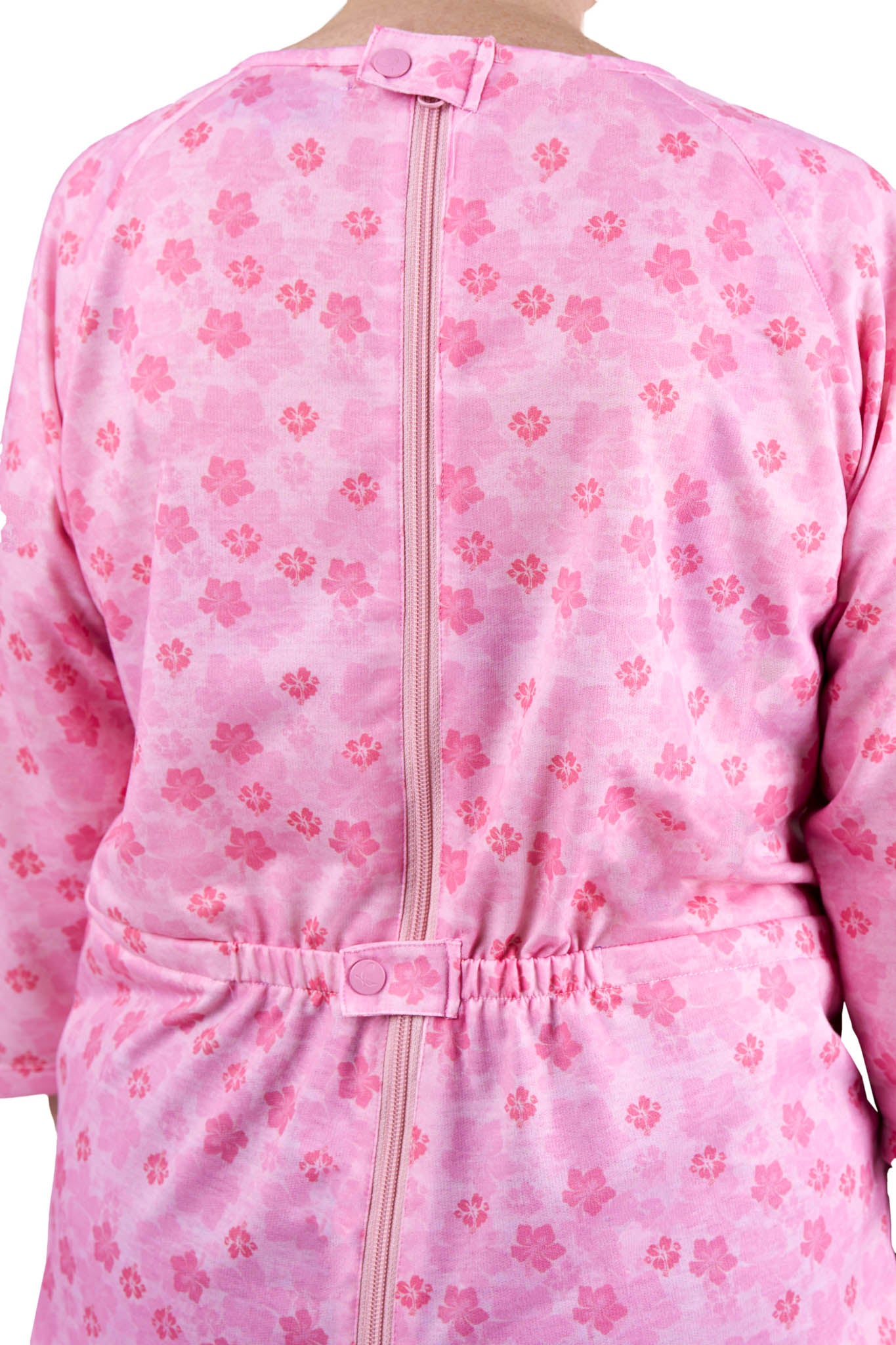 - Les longues fermetures éclairs au dos et à l’entrejambe facilitent le changement des sous-vêtements d’incontinence et permettent un habillage sans douleur.
