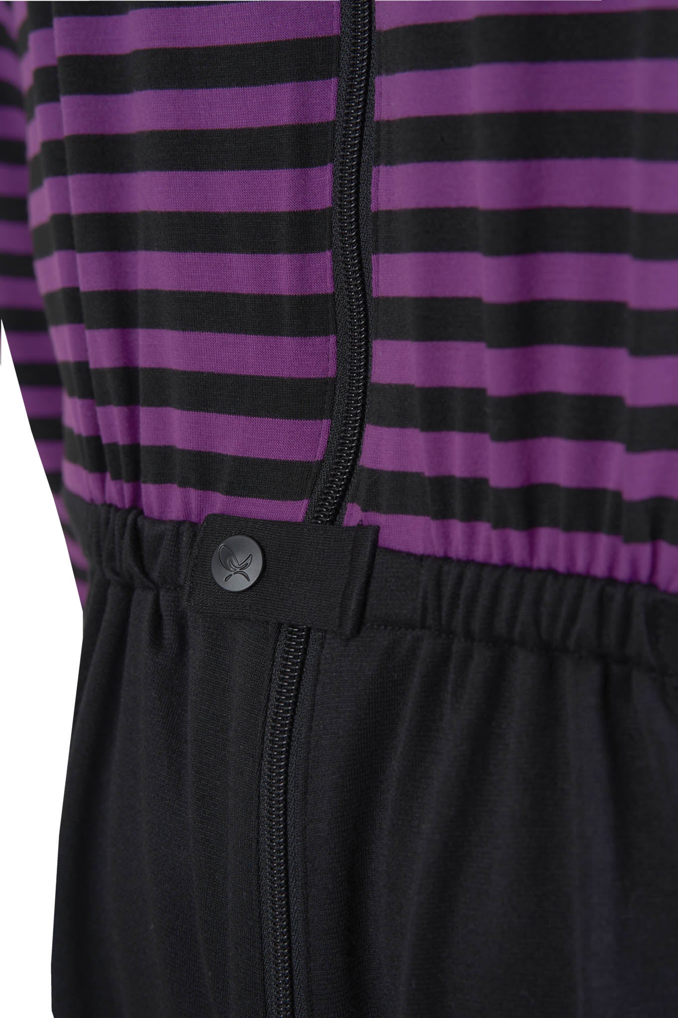 - Les longues fermetures éclairs au dos et à l’entrejambe facilitent le changement des sous-vêtements d’incontinence et permettent un habillage sans douleur.