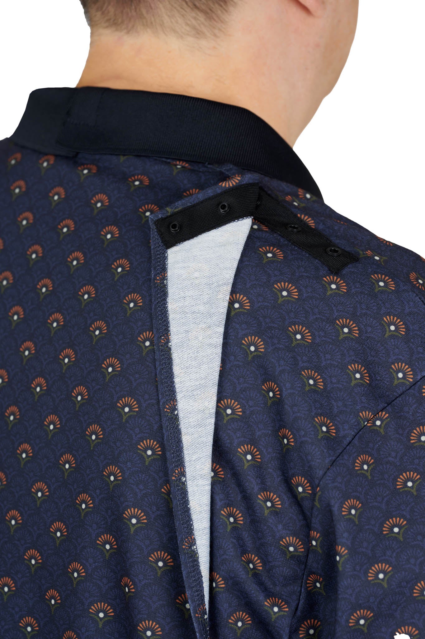 - Haut entièrement ouvert à l'arrière avec fermetures à boutons-pressions qui facilitent grandement l'habillage, tant pour la personne habillée que pour l'aide-soignant qui l'habille.