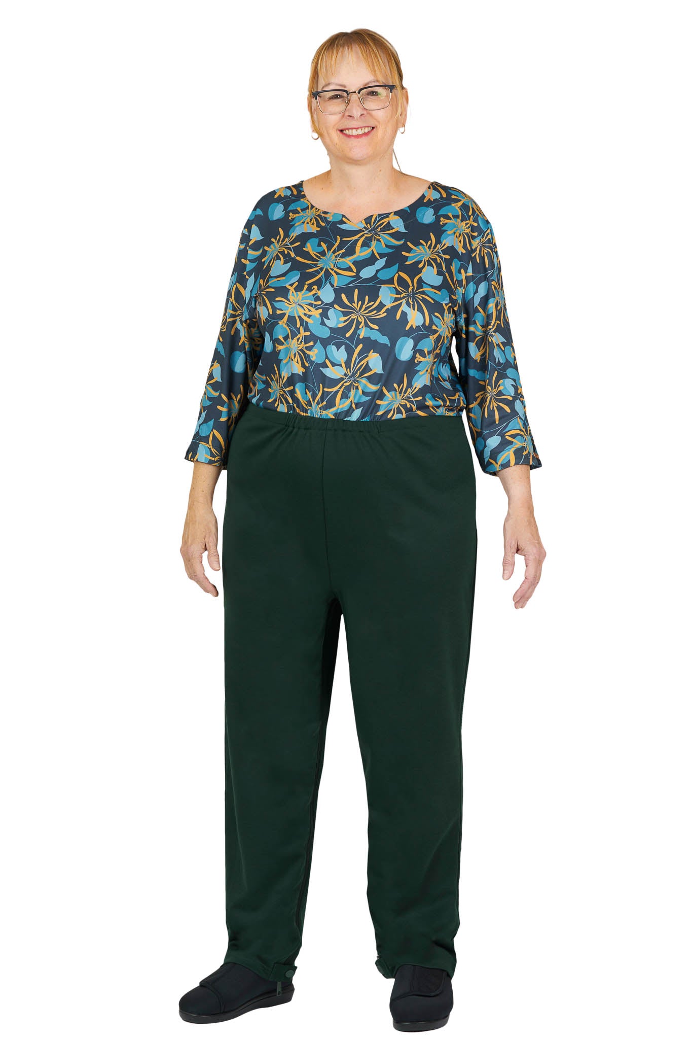 - Les longues fermetures éclairs au dos et à l’entrejambe facilitent le changement des sous-vêtements d’incontinence et permettent un habillage sans douleur.