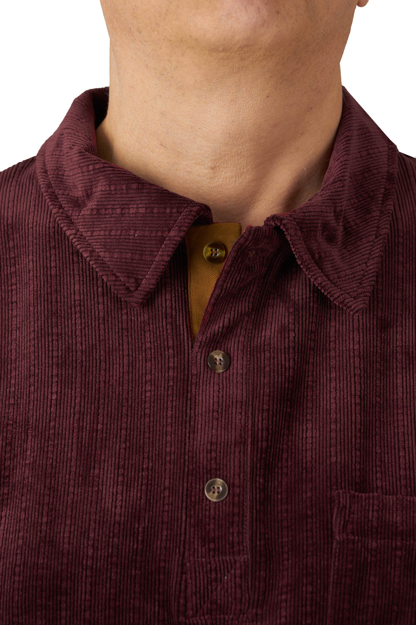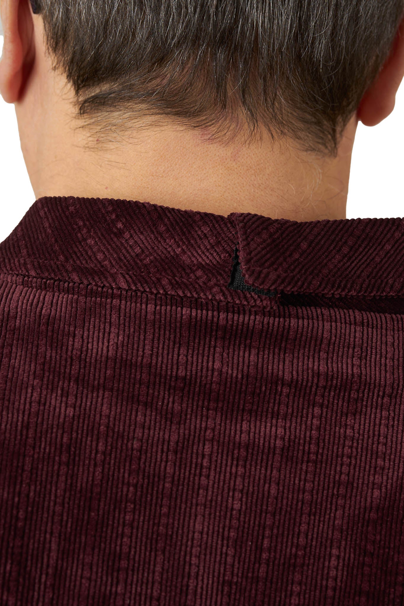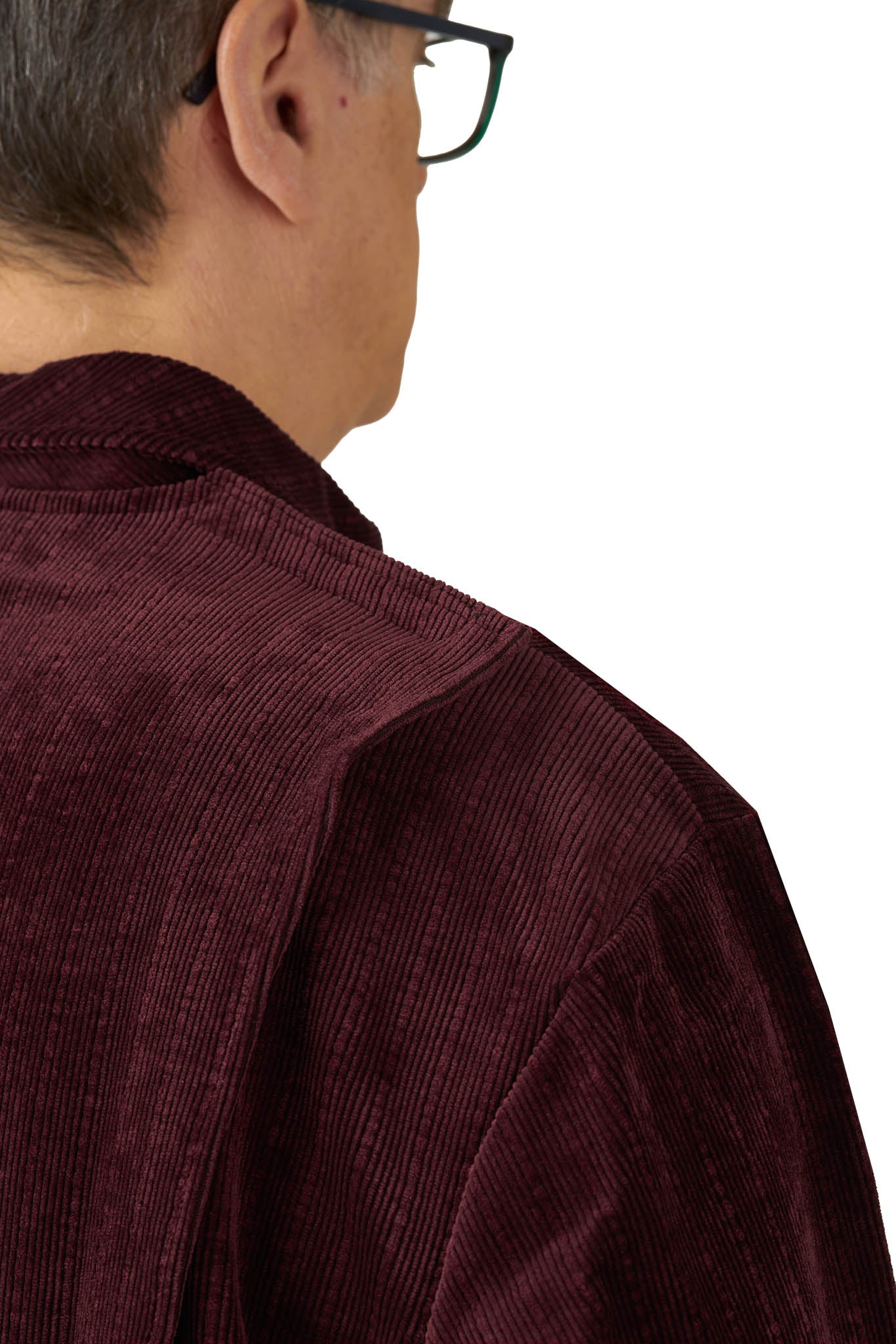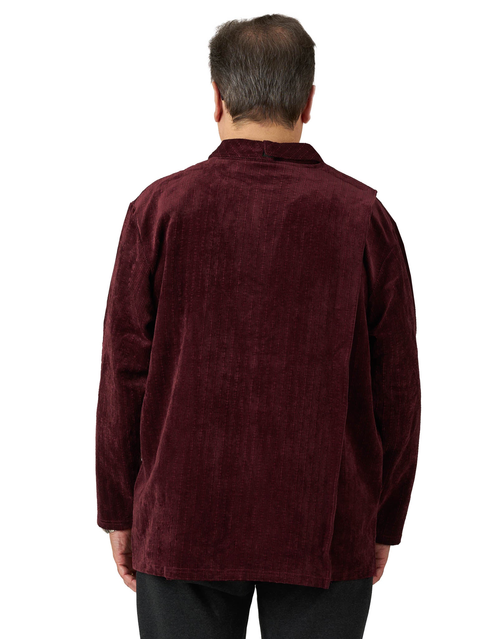Col polo à manches longues en tricot de velour côtelé avec simili suède sur la patte intérieur avant. Ouverture complète au dos avec fermeture à bouton-pression! Idéal pour l'habillage assisté par un soignant ou un proche aidant.