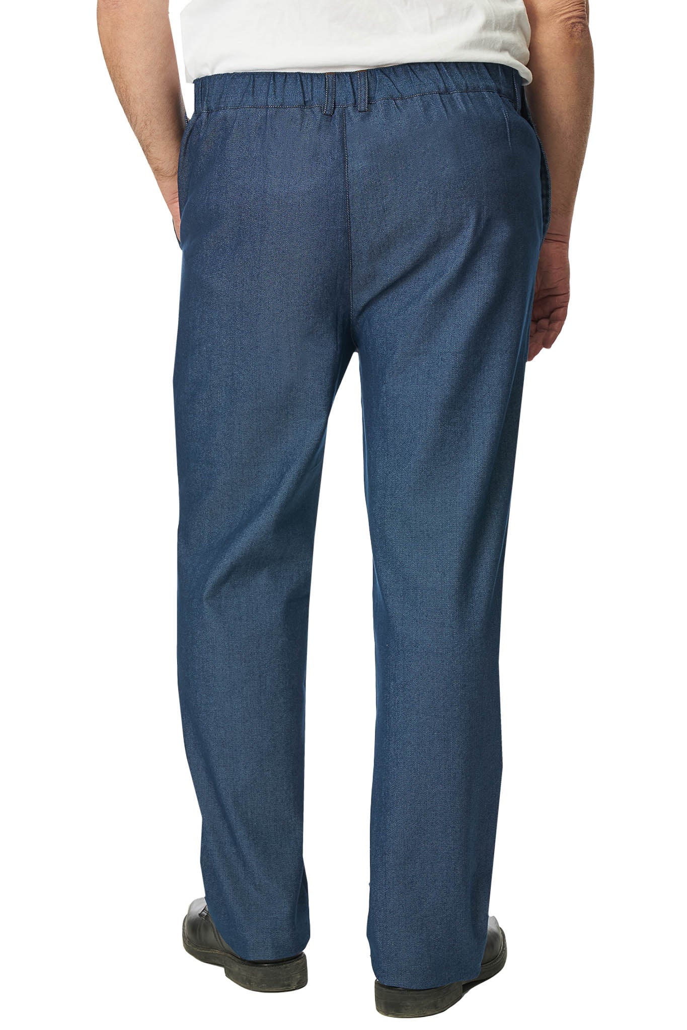 Ouverture sur les cotés avec fermetures ajustables par bandes velcro. Jeans adapté avec taille élastique pour hommes souffrant d'arthrite. Idéal pour les aînés et les personnes handicappées ou à mobilité réduite. Le panneau à l'avant se plie vers le bas pour l'habillage facile en position assise ou couchée.
