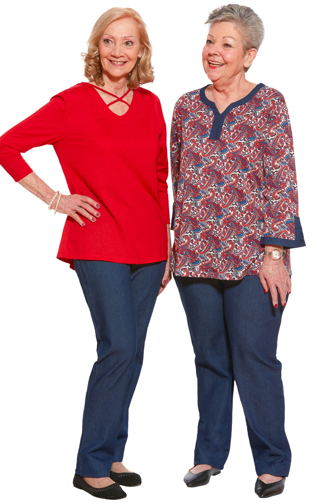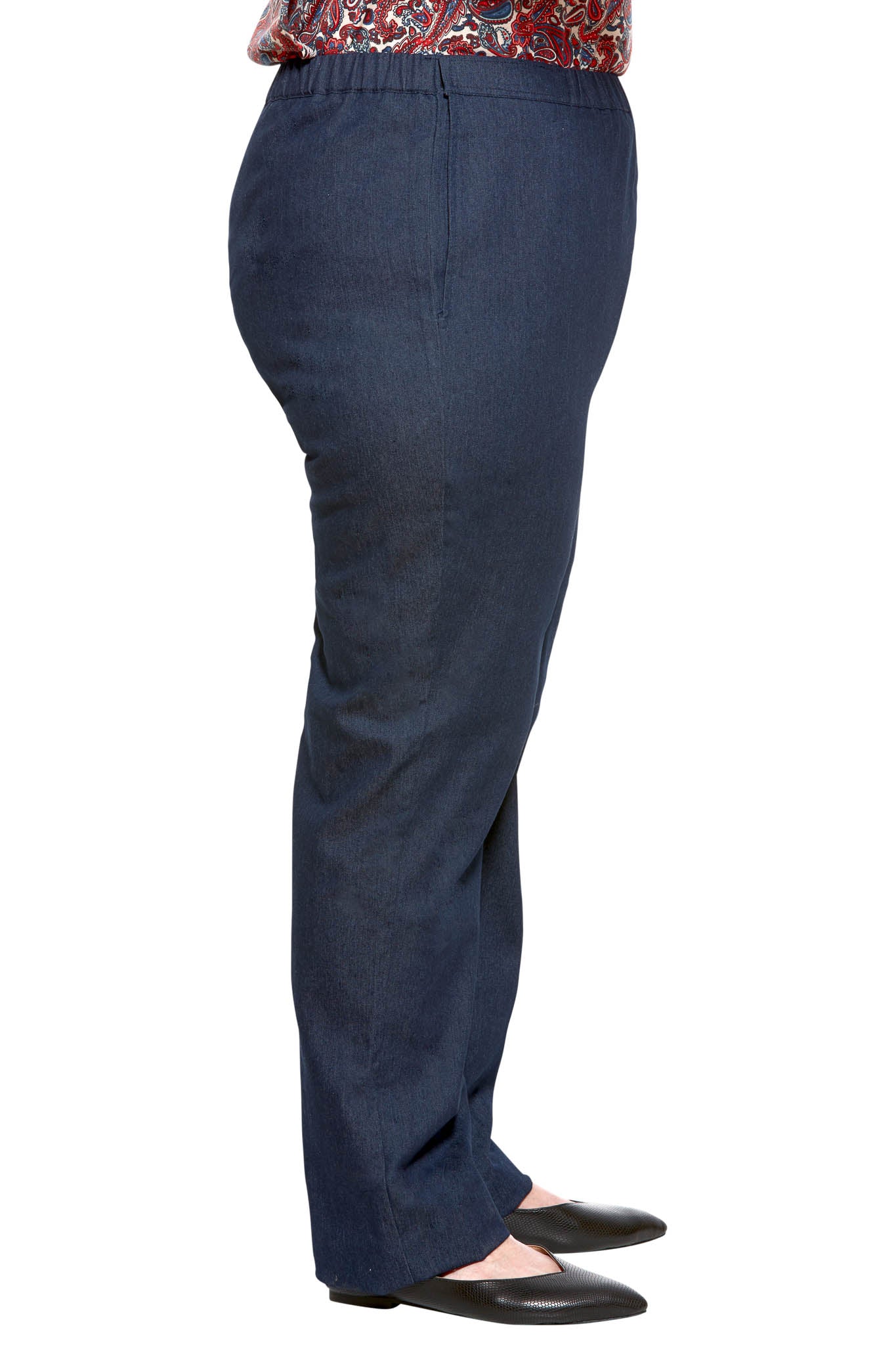 Easy to put on, these denim trousers feature adjustable velcro strips on both sides of the elastic waistband allowing for adjustable, struggle free dressing. Terrific for handicapped or elderly/seniors with reduced mobility. The front fold-down panel provides easy slip-on dressing from a wheelchair or seated position.