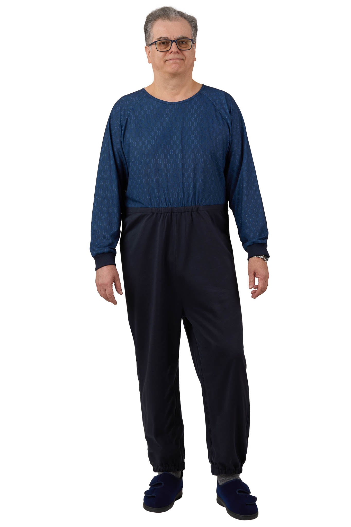 - Comfortable and non-restrictive, this jumpsuit ensures the respect and dignity of men suffering from cognitive disorders by restricting access to their incontinence underwear.