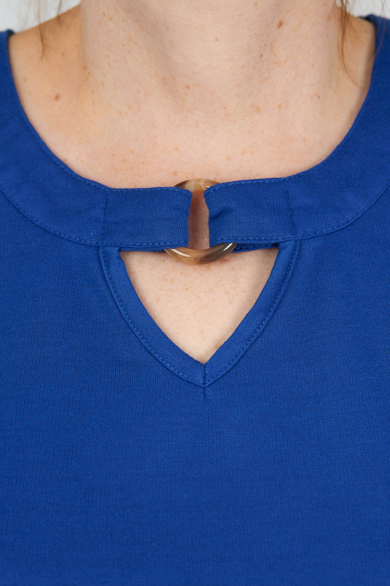 Light knit top with terry backing will be a comfortable option with the simple loop detail at neckline. Full back opening for easy assisted glide on dressing.