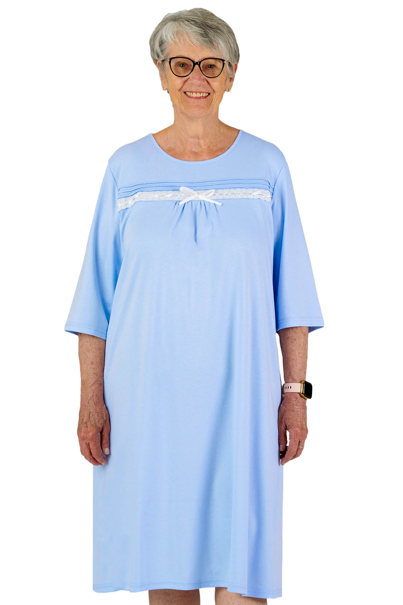 - Open back adaptive nightgown ideal for elderly/seniors in nursing homes, long term care facilities, hospitals and for home care settings.