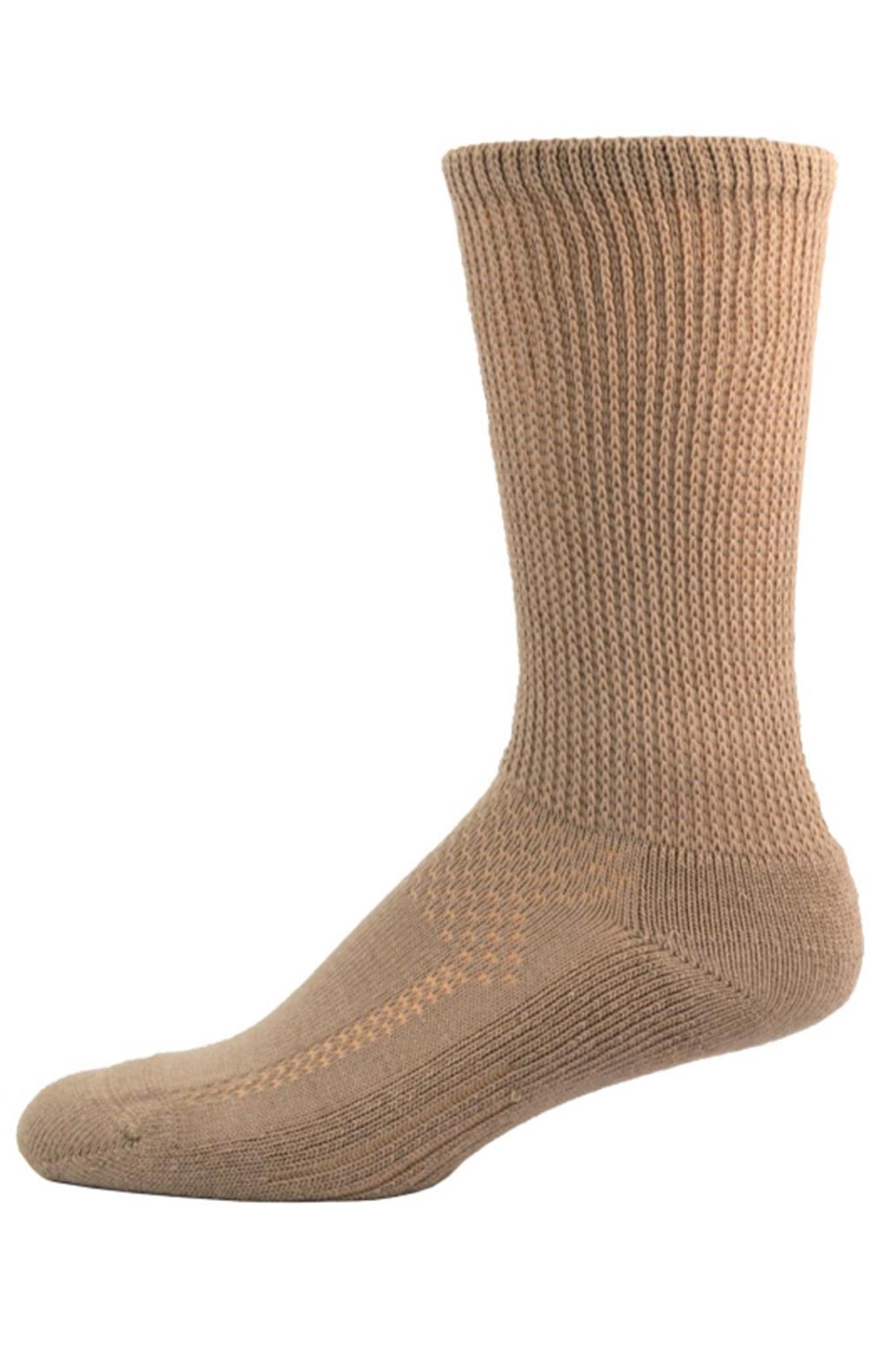 - Mid calf wide stretch. Flat seam for comfort. Moisture wicking. Cushioned Sole. Easy to slip on. Sag resistant. For both men and women.