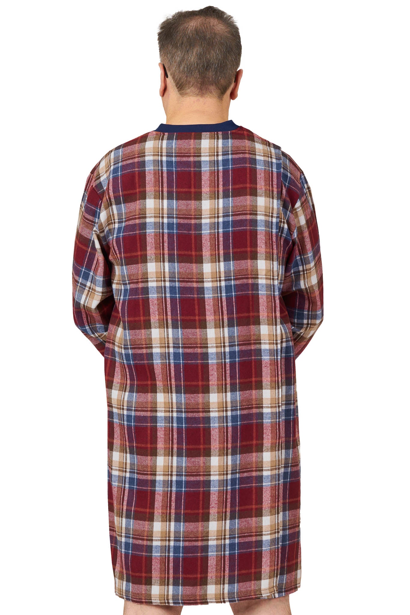 The Stewart night shirt is made with a classic and cozy flannel texture. Discover the perfect style for anyone looking to lounge around in total comfort or have a restful night. The V-neck and long sleeves are finished with a rib cuff. Full open back with snap closures.