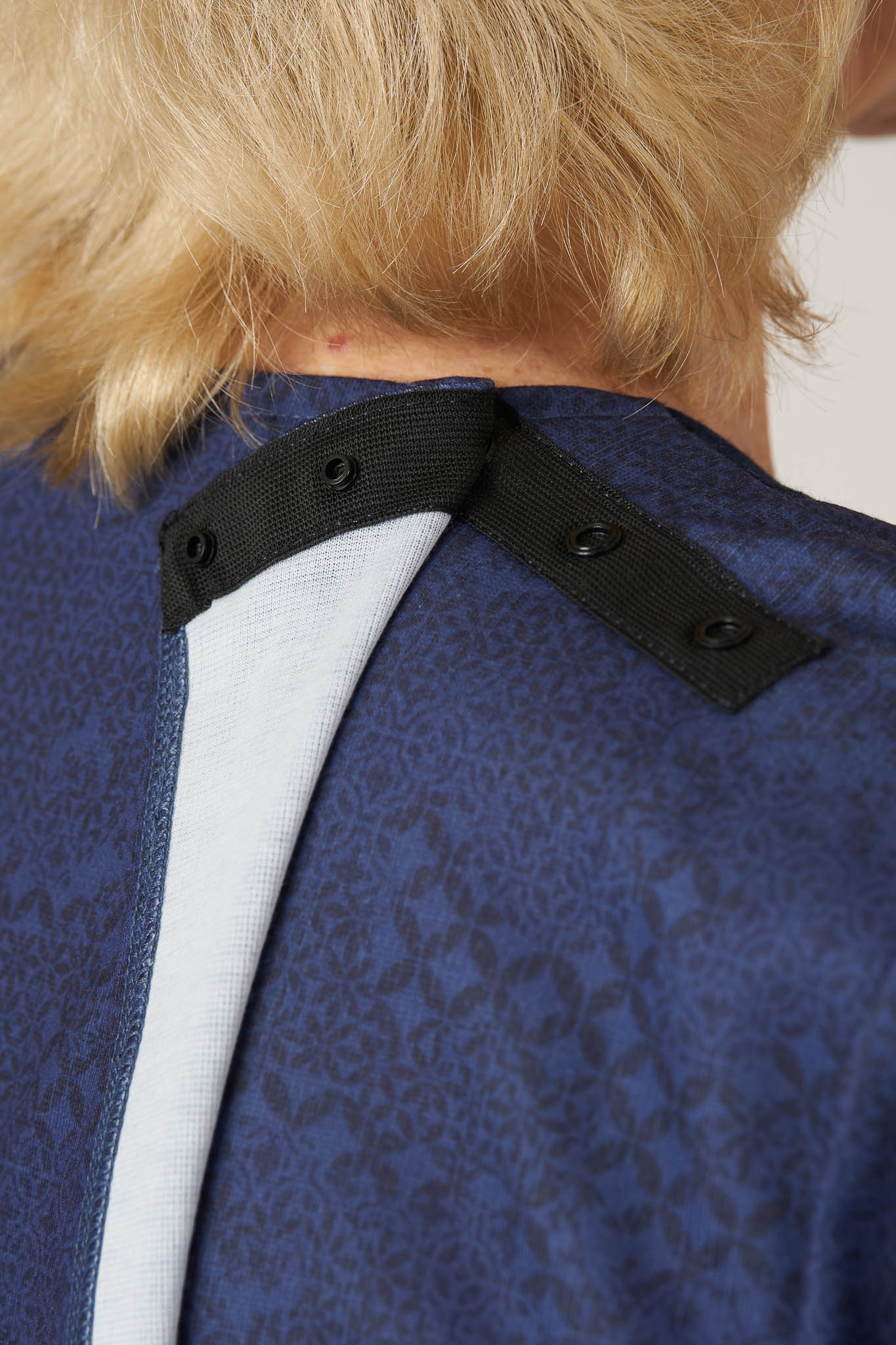 - It's full back opening and conveniently placed snap buttons on each shoulder makes it perfect for caregiver assisted dressing.